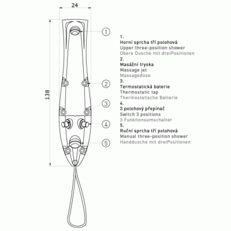 TEIKO Amman masážní panel s termostatickou baterií V261137N65T01001Rozměry: 137 x 24 x 11 cm