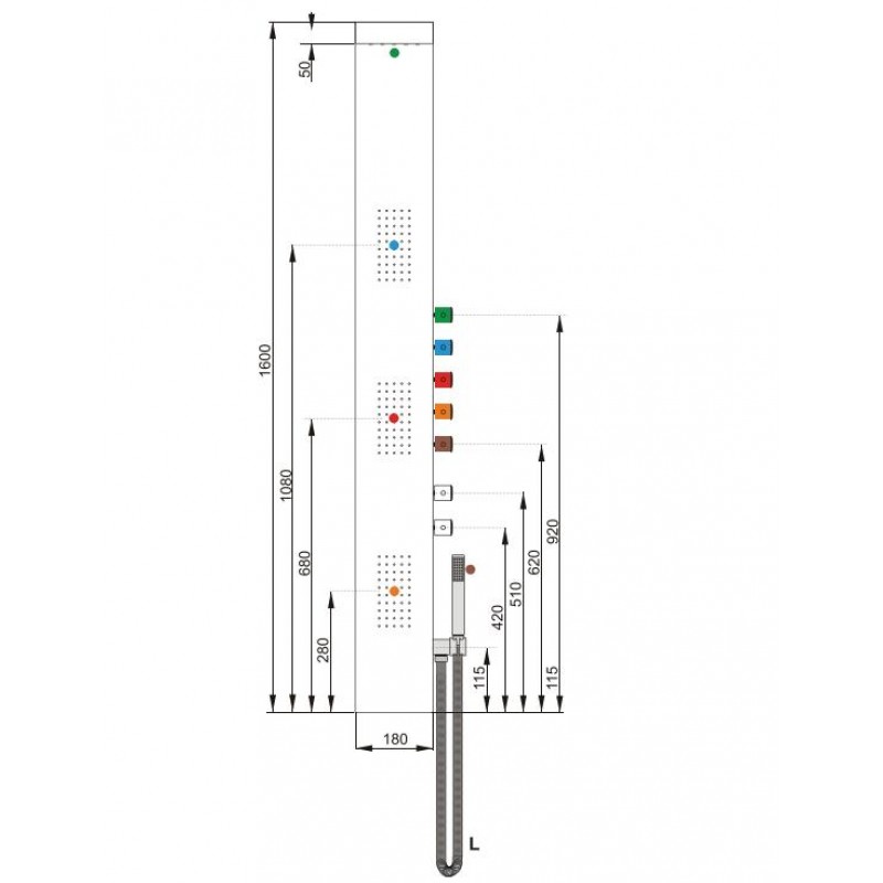 TEIKO Arges nástěnný sprchový panel, nerez V261160N90T03004Rozměry: 160 x 18 x 48,5 cm