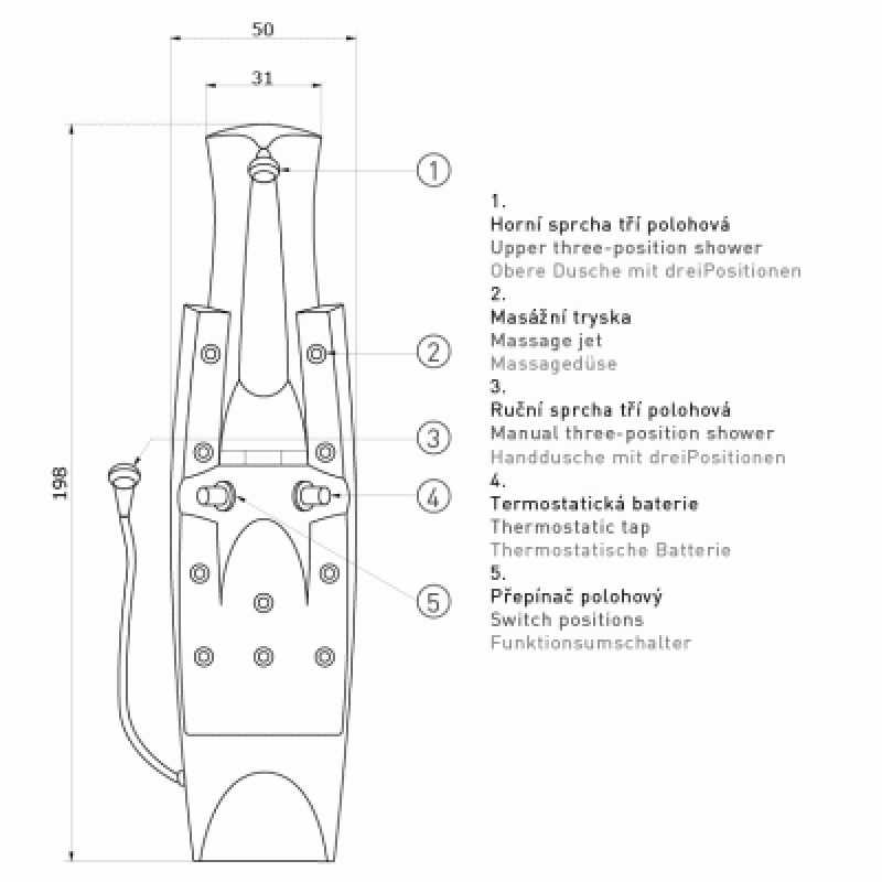TEIKO Athos sprchový masážní panel 200 x 50 x 11cm, termostatickou baterií V262200N66T01001Rozměry: 200 x 50 x 11 cm