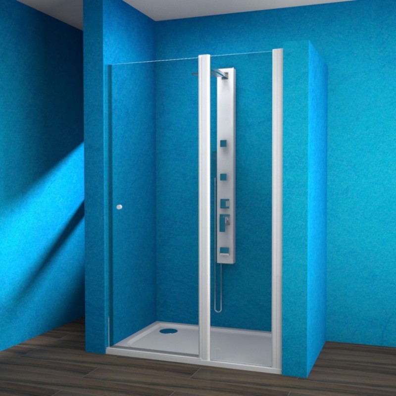 Bezrámová křídla z bezpečnostního skla tloušťky 6 mm řady EMOTION. Skleněná tabule je uchycená v nosném hliníkovém těle se zvedacím a otočným mechanismem na koncích. Přes čep mechanismu a upevňovací profily jsou zástěny uchyceny na zeď a ustaveny tak, aby umožňovaly pohodlné otevírání při optimální těsnosti. Profil zástěny je v bílém provedení nebo ve stříbrném eloxu. Nabízíme 4 varianty dveří v rozměrech 190x80, 190x90, 190x100 a 190x120.