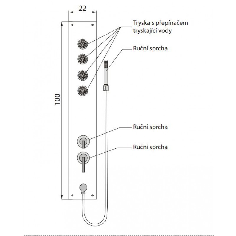 TEIKO rohový sprchový masážní panel 100 x 22 cm BOSS ECO P1 V262100N92T02011Rozměry: 100 x 22 cm