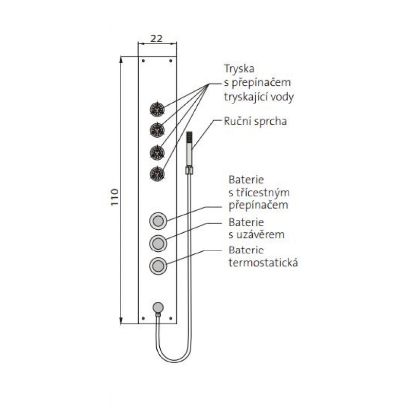TEIKO rohový sprchový masážní panel 110 x 22 cm BOSS ECO Therm T1 V262110N92T02021Rozměry: 110 x 22 cm