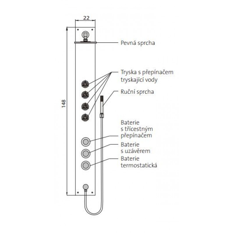 TEIKO rohový sprchový masážní panel 148 x 22 cm BOSS ECO Therm T2 V262148N92T02021Rozměry: 148 x 22 cm