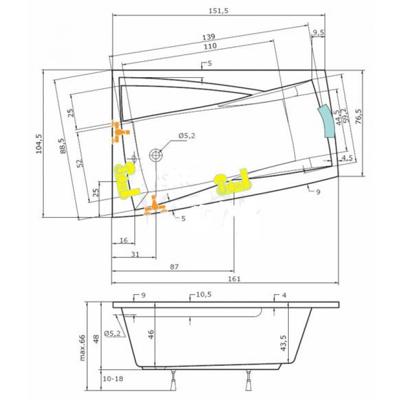 TEIKO Vana Ara P rohová 160x105 cm, akrylátová, bílá, pravá V110160R04T06001Rozměry: 160 x 105 x 46 cm