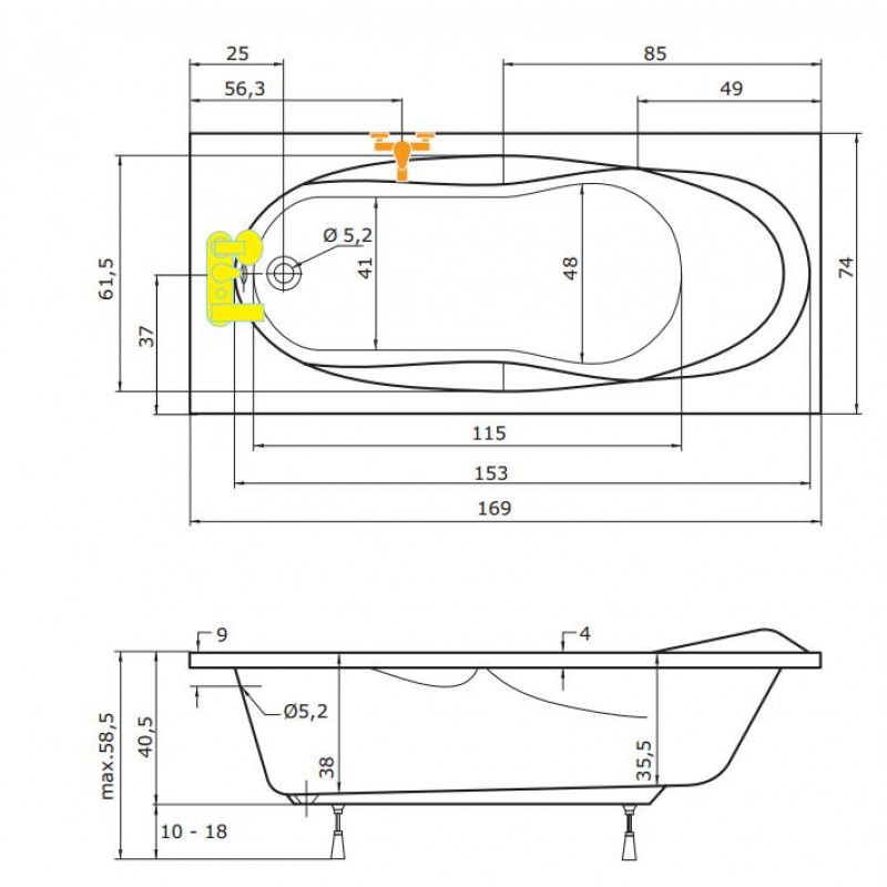 - Pre odoslanie na Slovensko navštívte TEIKO Vaňa Canaria obdĺžniková 170 x 85 cm - HTP systém ECO HYDRO V212170N04T02211