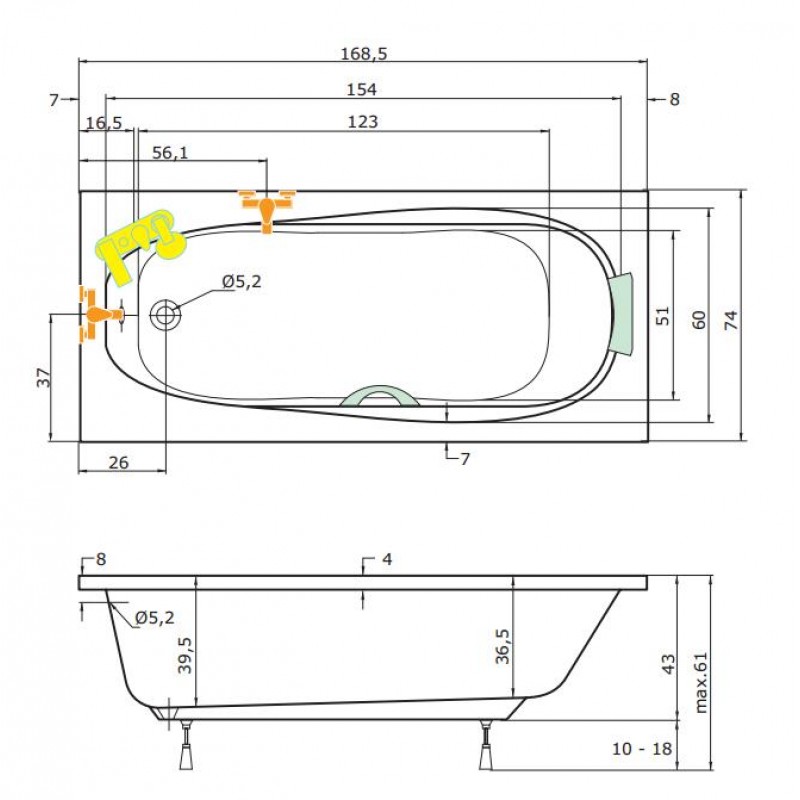 TEIKO Vana Elba obdélníková 170 x 75 cm - HTP systém ECO HYDRO V212170N04T03211Rozměry: 170 x 75 x 39,5 cm