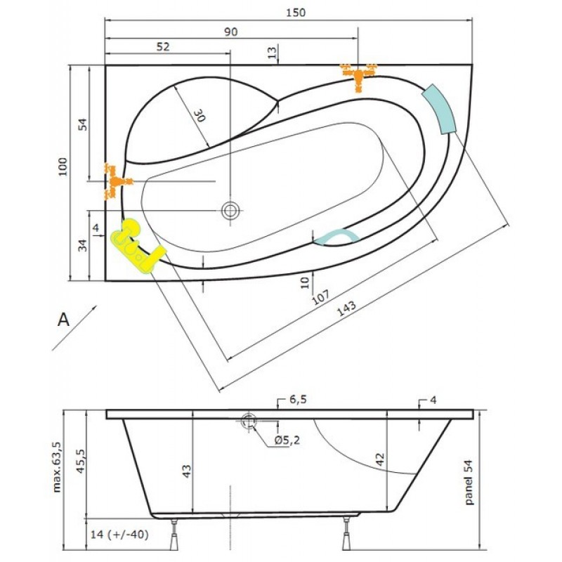 TEIKO Vana Medea 150 L rohová 150x100 cm - HTP systém ECO HYDRO, levá V210150L04T12211Rozměry: 150 x 100 x 42 cm