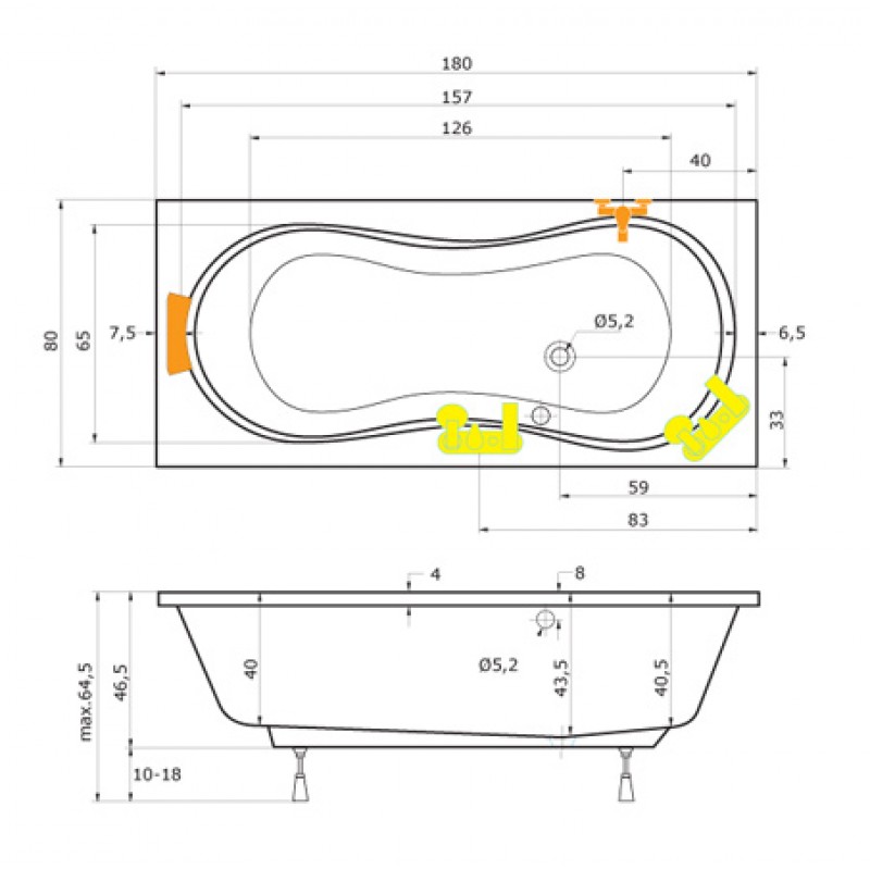Obdélníkovou akrylátovou vanu ORIENT "stoosmdesátkové řady" s atypicky umístěným odpadem lze dovybavit několika typy vanových zástěn, boční stěnou BSVP 80, krycím panelem (čelní a boční) a hydromasážními systémy řady ECO a STANDARD.