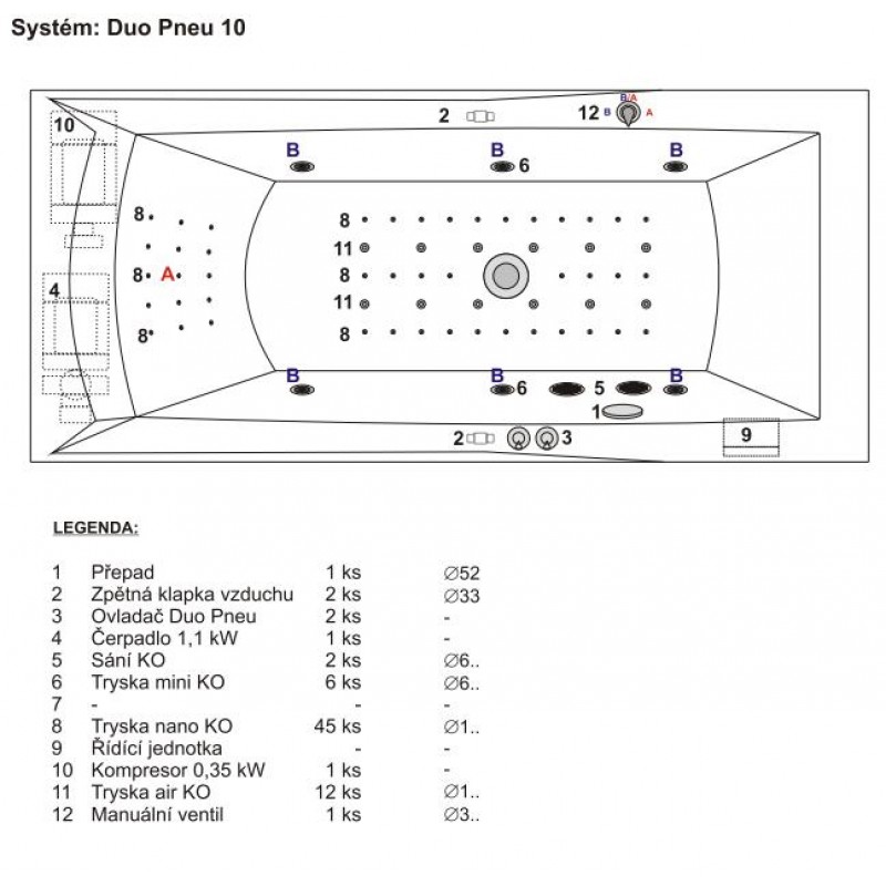 Vzduchové trysky - přivádí vzduch zdmychadla pro povrchovou relaxační masáž. Jsou instalovány do nohou.