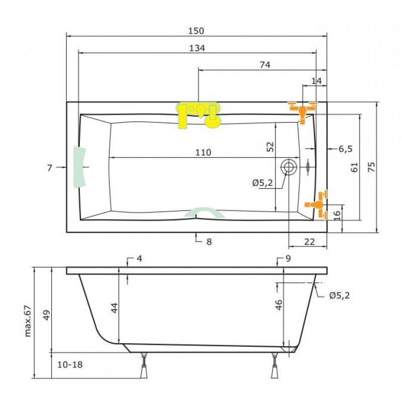 TEIKO Vana Vela obdélníková 150 x 75 cm - HTP systém ECO HYDRO V212150N04T01211Rozměry: 150 x 75 x 46 cm