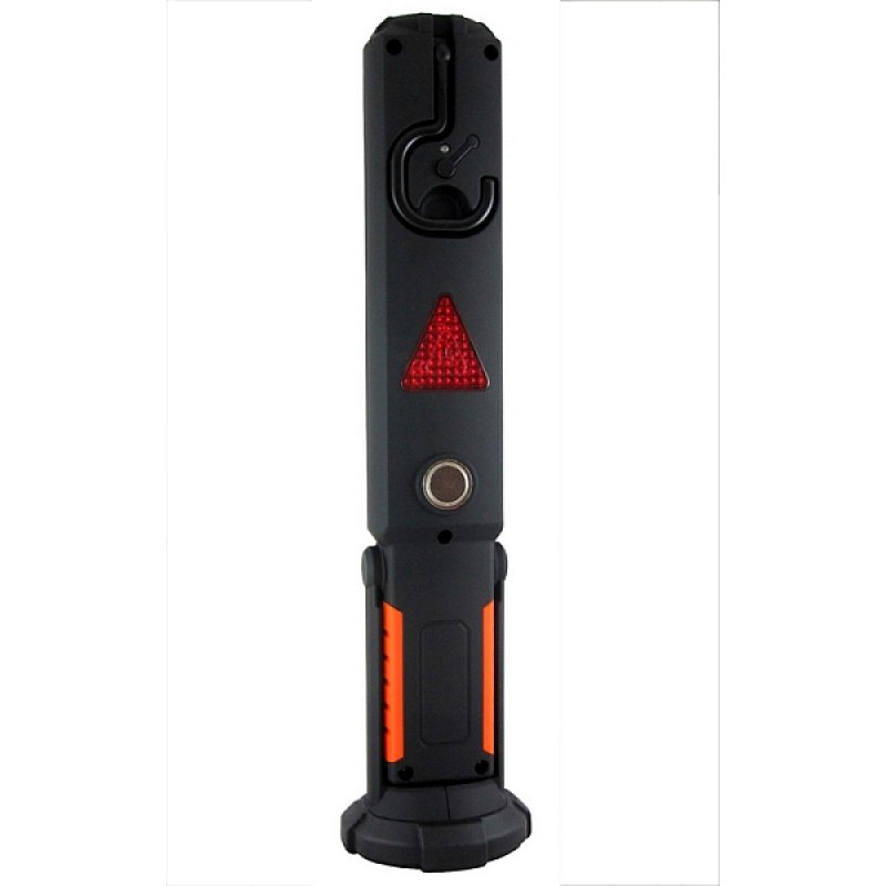 Ruční LED PROFI nabíjecí svítilna BC TRA 200s protiskluzovou ABS povrchovou úpravou, výstražným červeným světlem, polohováním, autoadaptérem,magnety a otočným háčkem pro zavěšení.
