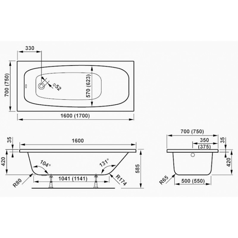 Vagnerplast MILBA 170 vana 1700x750x420 mmProvedení: klasická