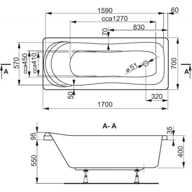 Vagnerplast PENELOPE vana 170x70x40 VPBA177PEN2E-01/NO