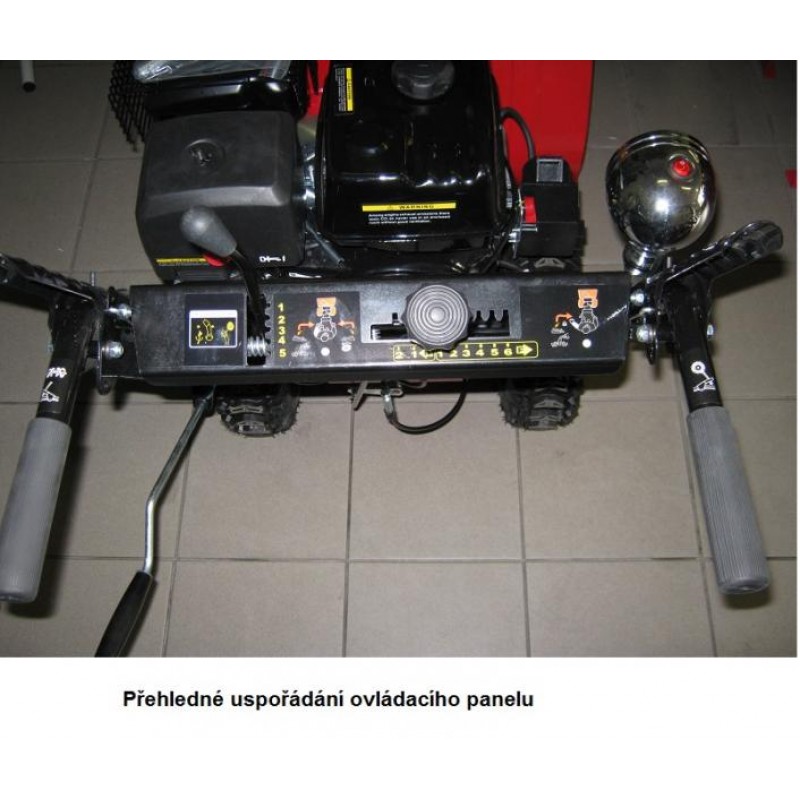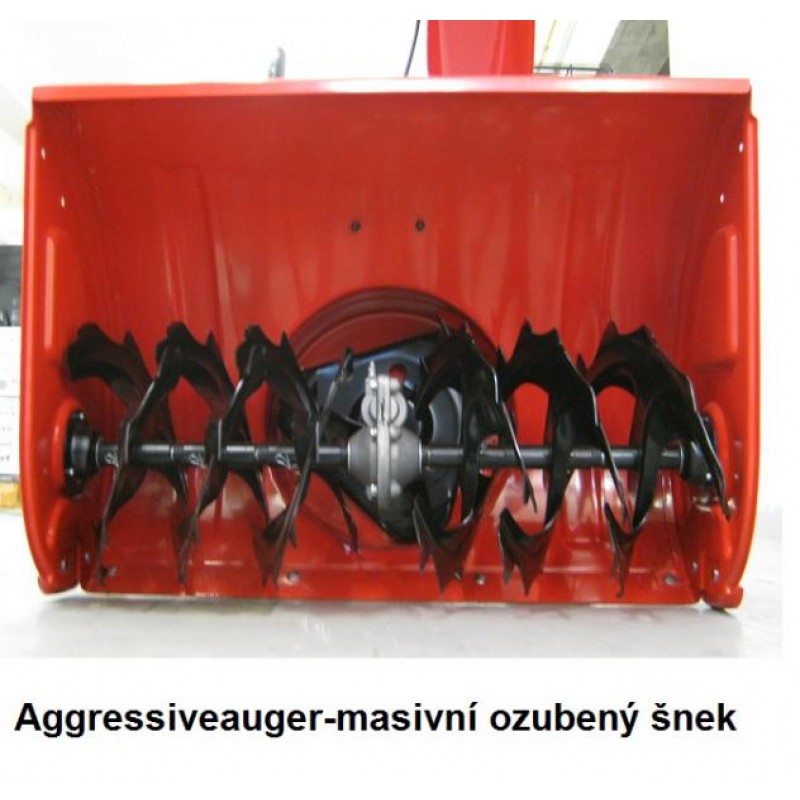 Ocelové šasí této frézy je zhotoveno z kvalitního kovu a celková hmotnost frézy je 120 kg. Ovládání pojezdu se 6 rychlostmi vpřed a 2 vzad, lze snadno regulovat pomocí ovládací páky umístěné v ovládacím panelu. Kola 15 " mají hrubý zimní dezén. Kovový výhazový komín, kterým je možné odhodit sníh do vzdálenosti až 20 m, je nastavitelný pomocí praktické páčky na levé straně v rozmezí až 190°.