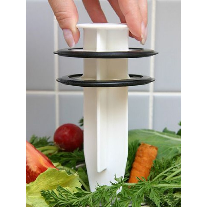 Víceúčelová zátka pro drtič Mr. Scrappy 001010008Tento nástroj je velmi užitečným doplňkem, který zvýší bezpečnost a komfort při používání drtiče odpadků. Při používání Mr. Scrappy už není zapotřebí, aby Vaše ruce přicházely do kontaktu s mnohdy nepříjemnými zbytky potravin. Nechcete-li při shrnování zbytků do drtiče přijít do styku s drceným odpadem, ani vodou, potom je Mr. Scrappy dobrou volbou.
