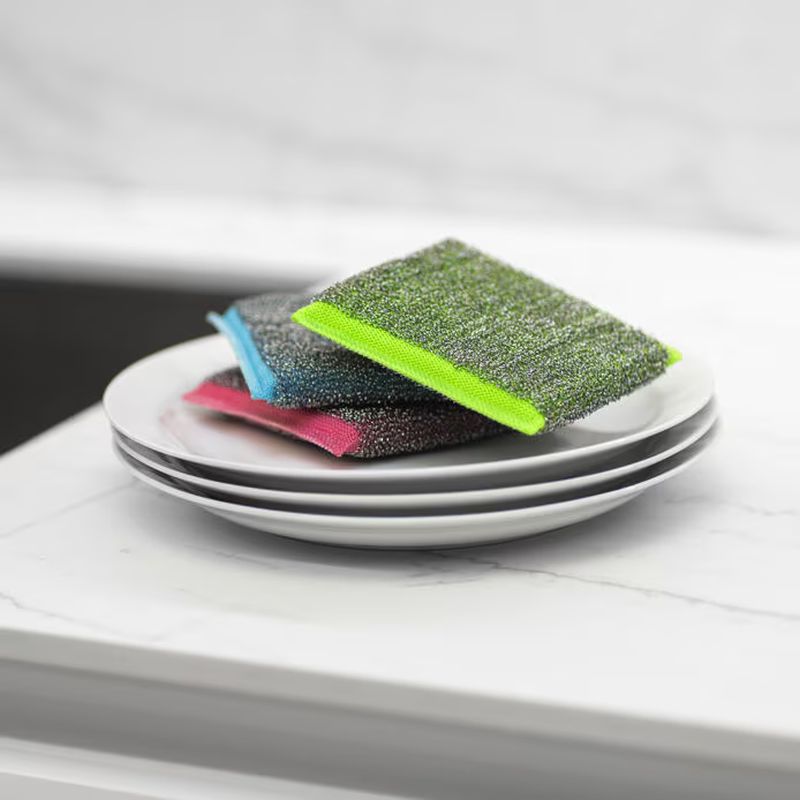 Kvalitní barevná drátěnka s pěnovým jádrem z nerezové oceli, která efektivně odstraní odolné nečistoty v kuchyni i na zahradním grilu, je mimořádně odolná, snadno opláchnutelná a ideální pro každodenní použití.