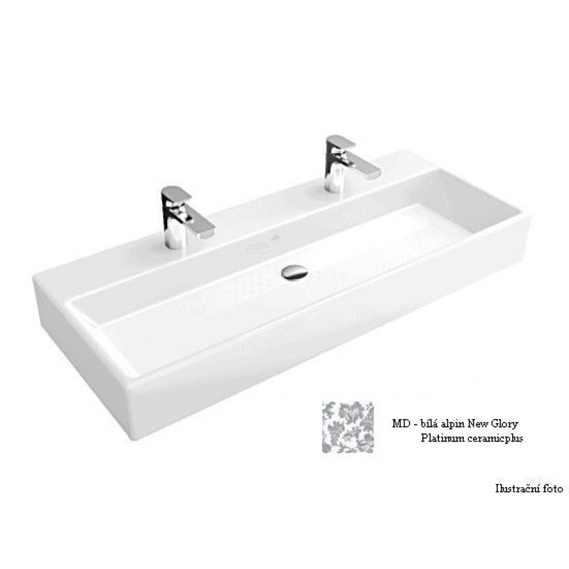 Villeroy & Boch Memento Umyvadlo k montáži s nábytkem 1000x470 mm, pro dvě 1otvorové armatury,bez přepadu, bílá alpin New Glory Platinum ceramicplus