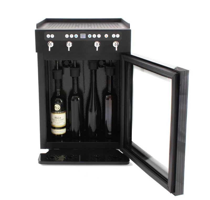 VinoTek VT4 Automatický dávkovač vína na 4 láhve 008010003VinoTek VT4 vám umožní stylově prezentovat a servírovat až 4 láhve červeného nebo bílého vína. Díky své kapacitě je tento automatický dávkovač vína vhodný do středně velkých gastro provozů. Ocení ho každý, kdo chce zvýšit prodej jakostního a přívlastkového vína. Vaši hosté už nemusejí váhat, jestli si pořídit láhev vína kterou neznají. S VinoTekem jim můžete dát jednoduše ochutnat z několika vín a pomoci jim tak s výběrem.