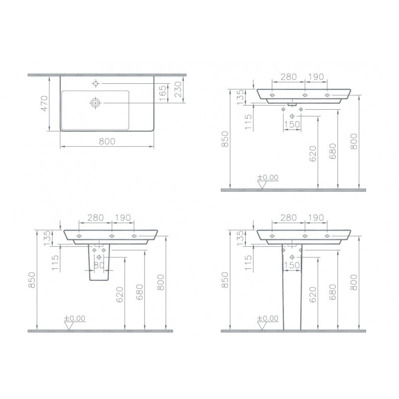 VITRA T4 umyvadlo asymetrické s otvorem 80 x 47 cm, bílé 4453-003-0001Rozměr: 80 x 47 cm