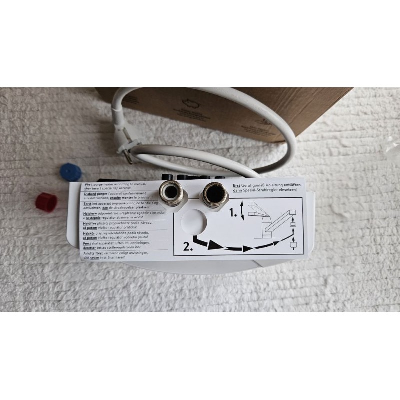 Dosahovaná teplota v rozmezí 35°- 50°C. Voda přitékající do armatury je bezprostředně ohřívána při průtoku ohřívačem tak, že nedochází ke ztrátám tepla v potrubí. Odběratel spotřebovává takové množství teplé vody, jaké právě potřebuje. Díky speciální mísící baterii je možné přístroj bez problémů namontovat na 1/2“ vodovodní přípoj.