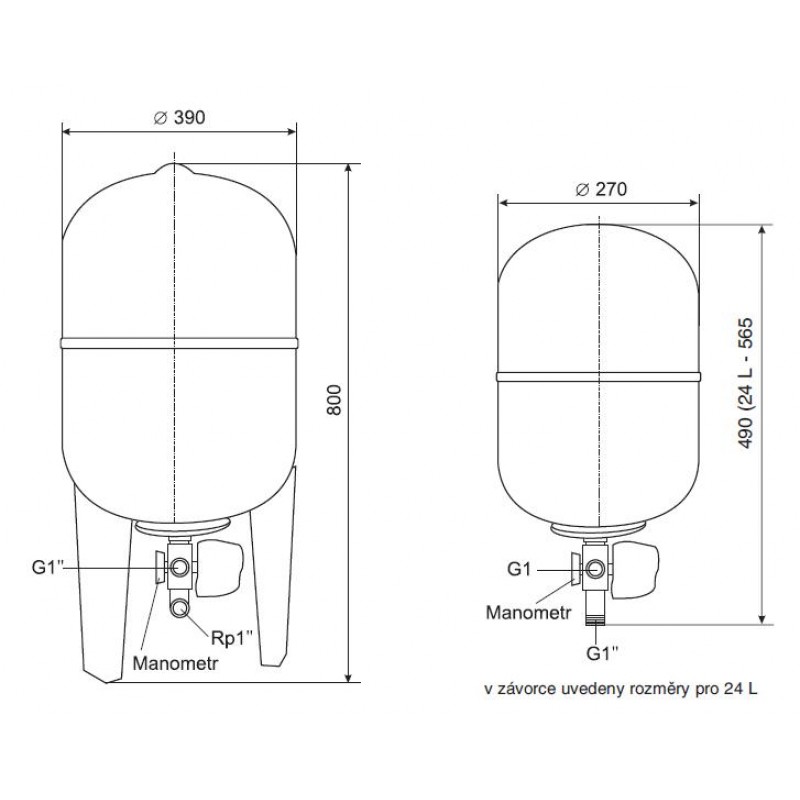 – Membránová tlaková nádrž 8 L, max. tlak 10 bar.